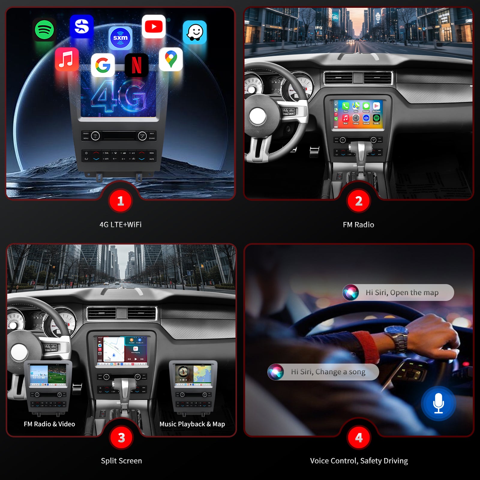 For Ford Mustang 2010-2014 Radio upgrade,9-inch QLED 8-Core CPU,touch screen Stereo,Wireless CarPlay & Android Auto,Free camera