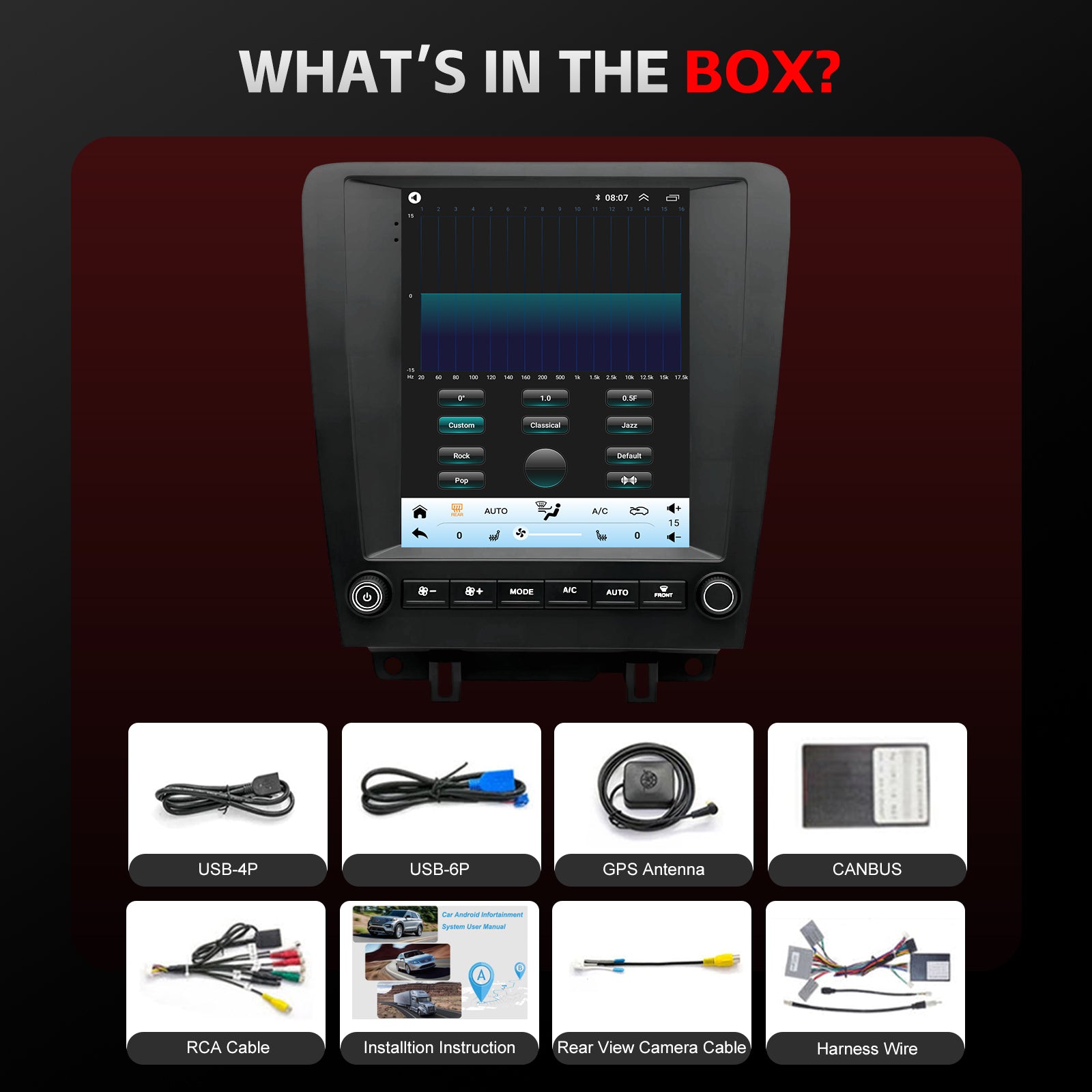 🚗 Factory Stereo Replacement: Directly integrates with your Ford Mustang’s dashboard, retaining original steering wheel radio controls, AC/climate settings, and reverse camera input. No loss of functionality!