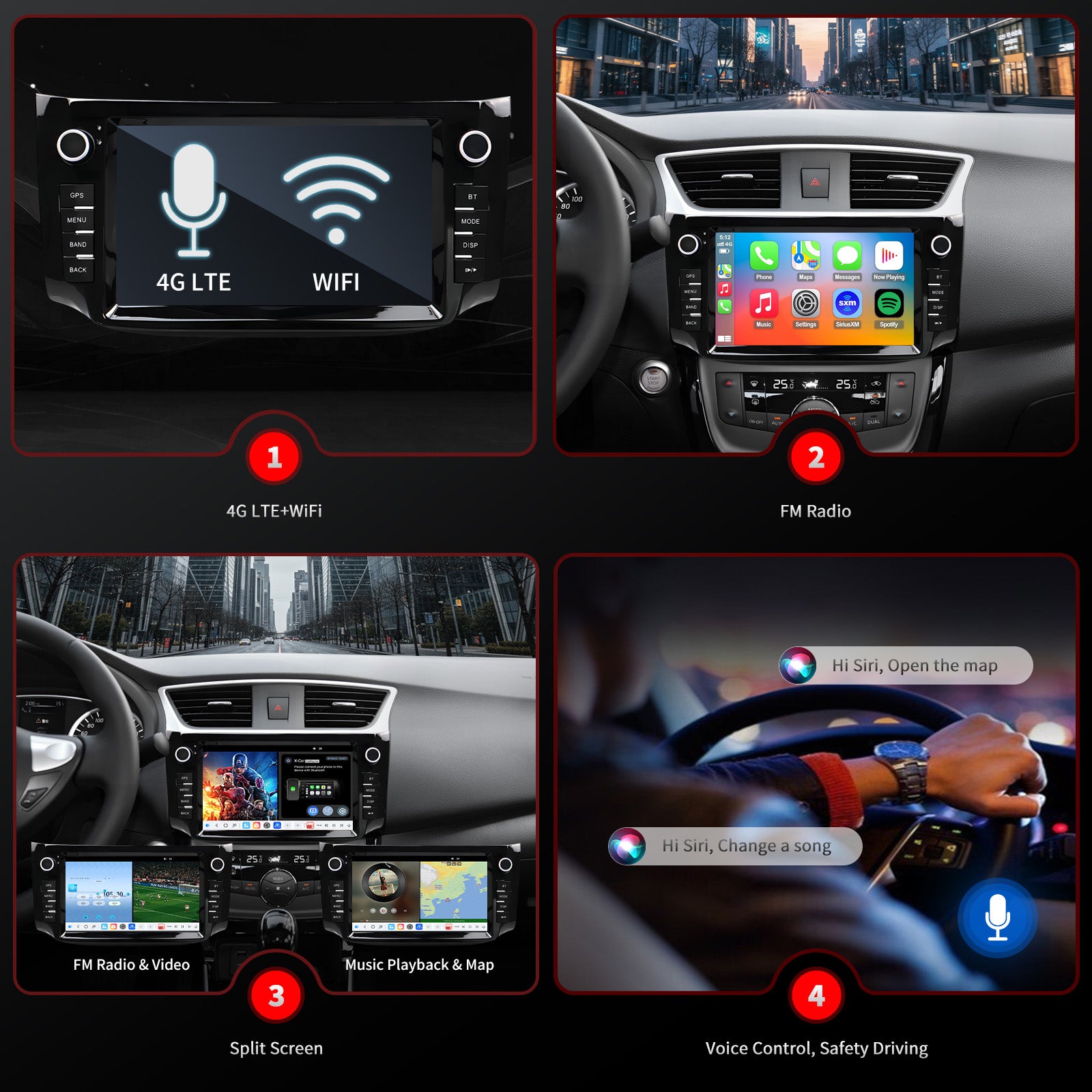 🚗 Factory Stereo Replacement: Directly integrates with your Nissan Sentra’s dashboard, retaining original steering wheel radio controls, AC/climate settings, and reverse camera input. No loss of functionality!