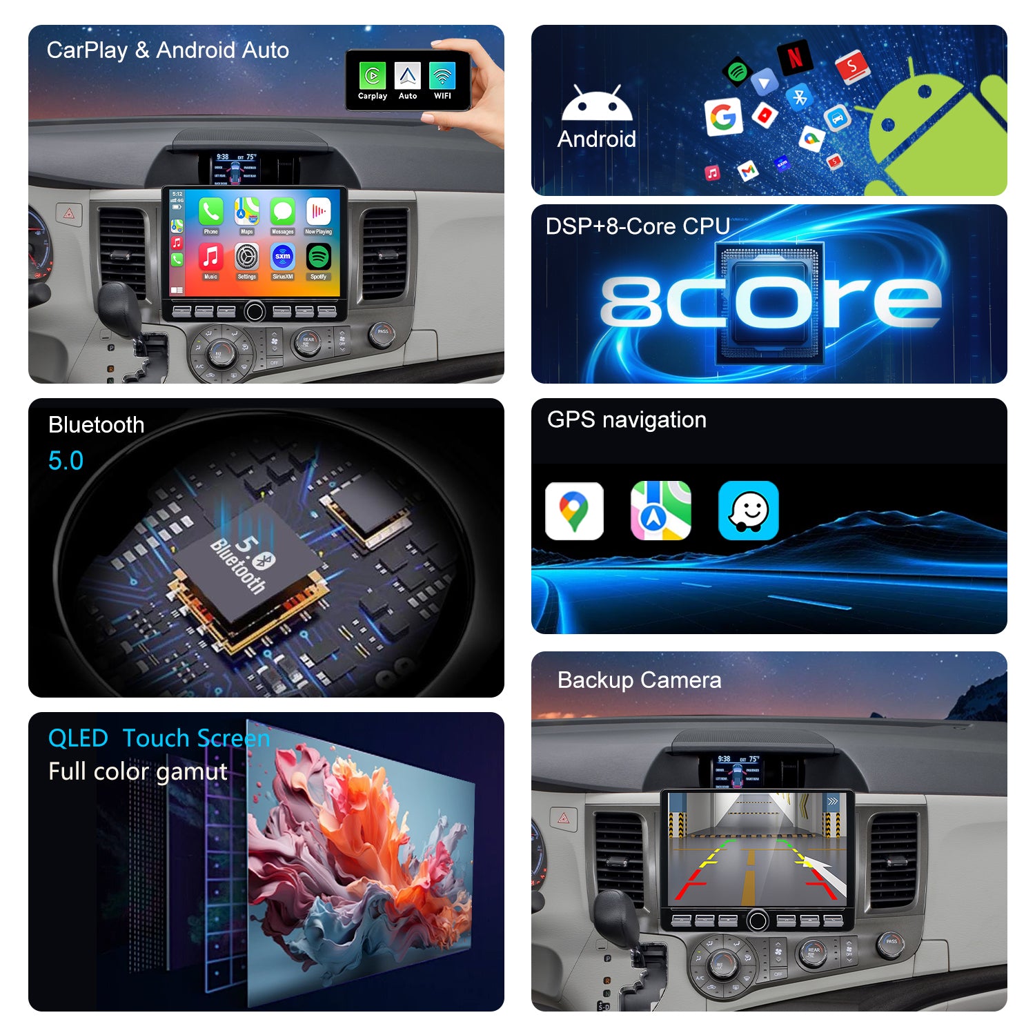 🚗 Factory Stereo Replacement: Directly integrates with your Toyota Sienna’s dashboard, retaining original steering wheel radio controls, AC/climate settings, and reverse camera input. No loss of functionality!